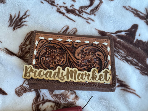 Checkered Spade Cowhide Tooled Leather Wallet Purse