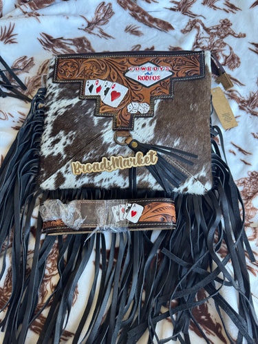 Vegas Rodeo Cards Cowhide Crossbody Fringe Purse