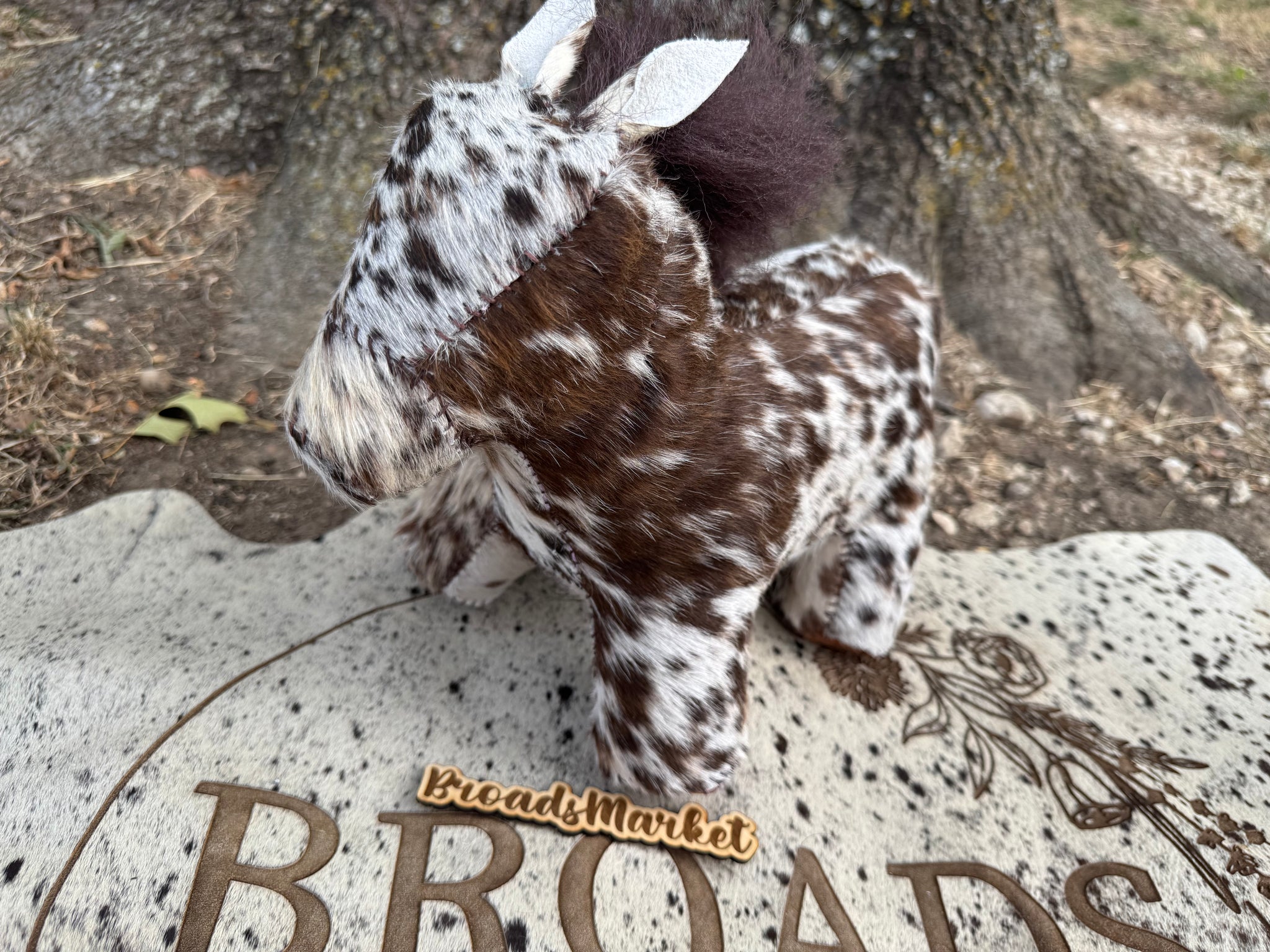 Enhance your home decor with the unique and rustic charm of the Cowhide Farm Pals Series 3. Each item is made of authentic cowhide and sheep skin, hand crafted for a one-of-a-kind look. Add a touch of natural beauty to any room with this high-quality piece.