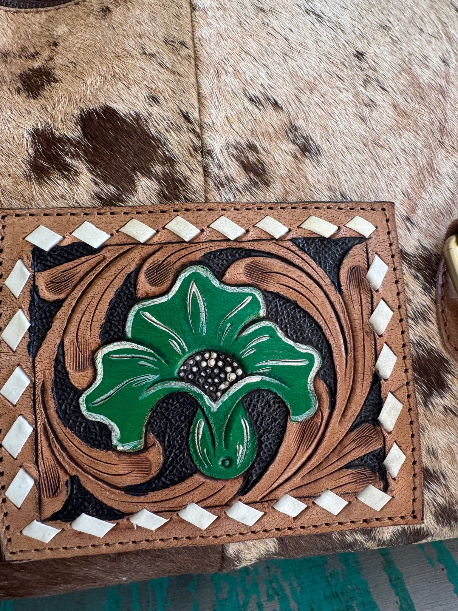 The Tooled Leather Duffle Overnight Bag is crafted from authentic cowhide, ensuring durability and a premium feel. Measuring 22x10x10 inches, it offers ample space for overnight essentials. The hand-tooled and hand-painted designs add unique aesthetic appeal, making it both functional and stylish for travel.