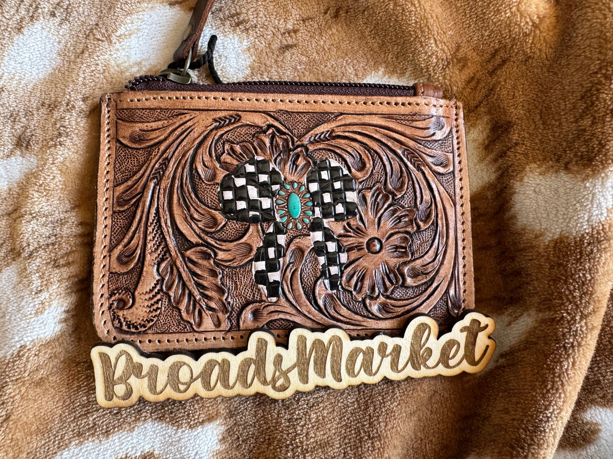 Our Tooled Checkered Bow Cowhide Coin Purses are crafted from 100% authentic cowhide and tooled leather, providing both durability and style. Each purse is hand painted, adding a unique touch to every piece. Measuring at 5x4 inches, it's the perfect size to hold your coins and small essentials.